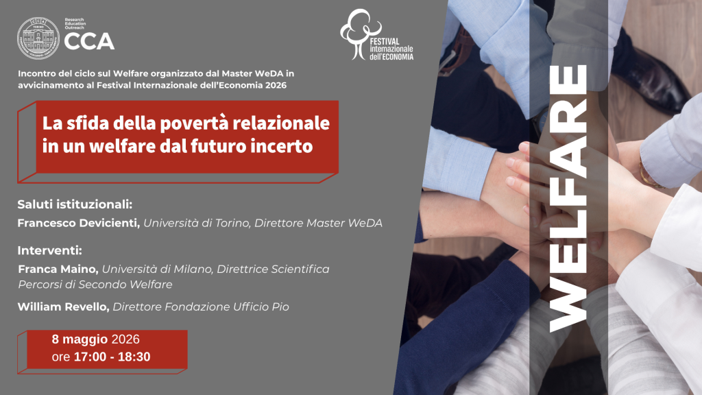 Esplorare le implicazioni della mancanza di legami significativi, tanto nella sfera privata quanto in quella pubblica, e le ricadute che questa ha sul benessere, la salute e la coesione delle comunità. È l’obiettivo del seminario “La sfida della povertà relazionale in un welfare dal futuro incerto“ organizzato nell’ambito del Master WeDA – Welfare: Fondamenti teorici e Data Analysis del Collegio del Carlo Alberto e parte degli incontri di avvicinamento al Festival Internazionale dell’Economia 2026, quest’anno dedicato al tema “Salvare lo Stato sociale”.