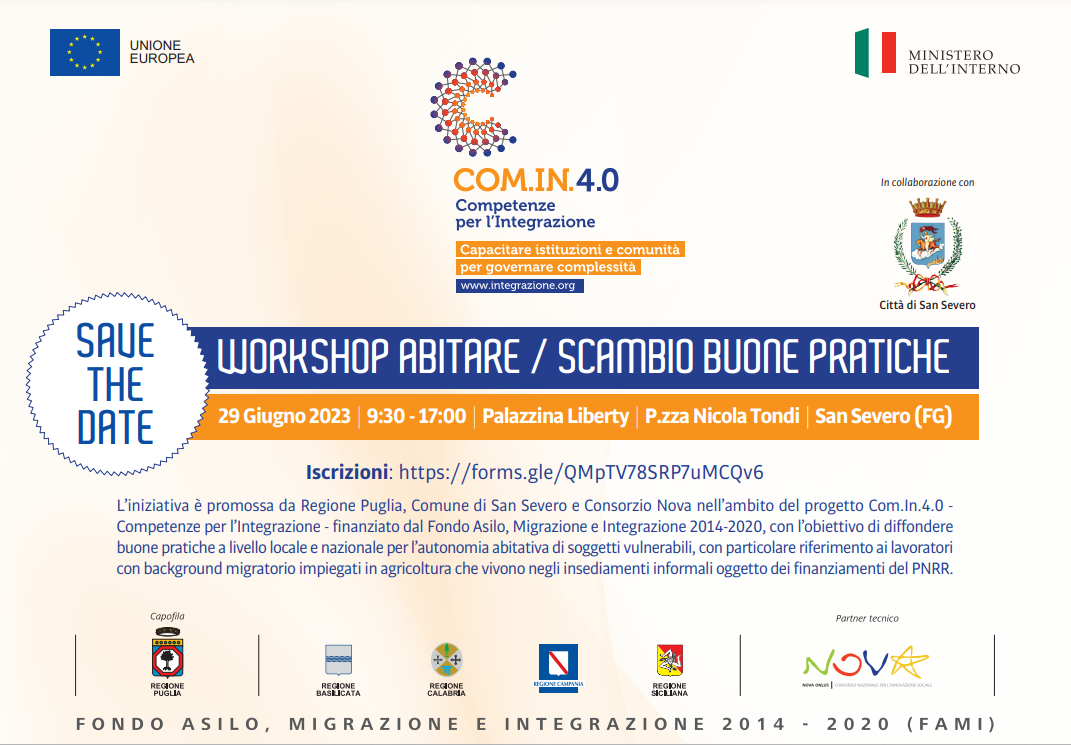 Il progetto COM.IN.4.0 – Competenze per l’integrazione si propone di consolidare meccanismi di governance multisettoriale che attraverso un approccio integrato alla pianificazione strategica consentano di perseguire risultati stabili per il governo territoriale dei fenomeni legati alla presenza di migranti regolari.