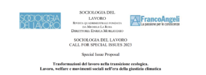La rivista Sociologia del Lavoro propone una call for paper allo scopo di ampliare il dibattito pubblico sul lavoro e le trasformazioni eco-sociali e in particolare sui temi della transizione giusta, del benessere sostenibile e della giustizia climatica.