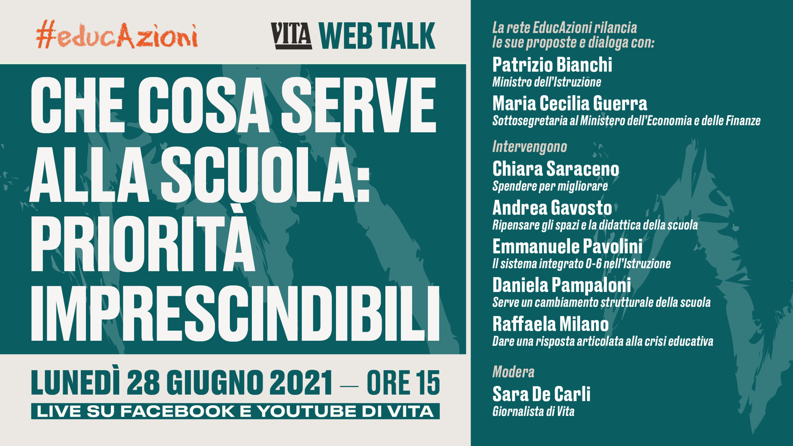 A moderare sarà Sara De Carli del portale Vita Non Profit. La diretta sarà trasmessa sul canale Youtube di Vita e sulla pagina Facebook di EducAzioni.