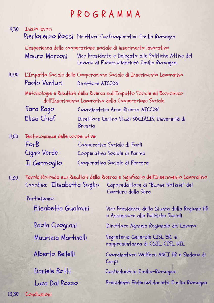 L’evento sarà un’occasione per presentare i risultati della ricerca sull’impatto sociale ed economico dell’inserimento lavorativo nelle cooperative sociali realizzata da Federsolidarietà Emilia Romagna.