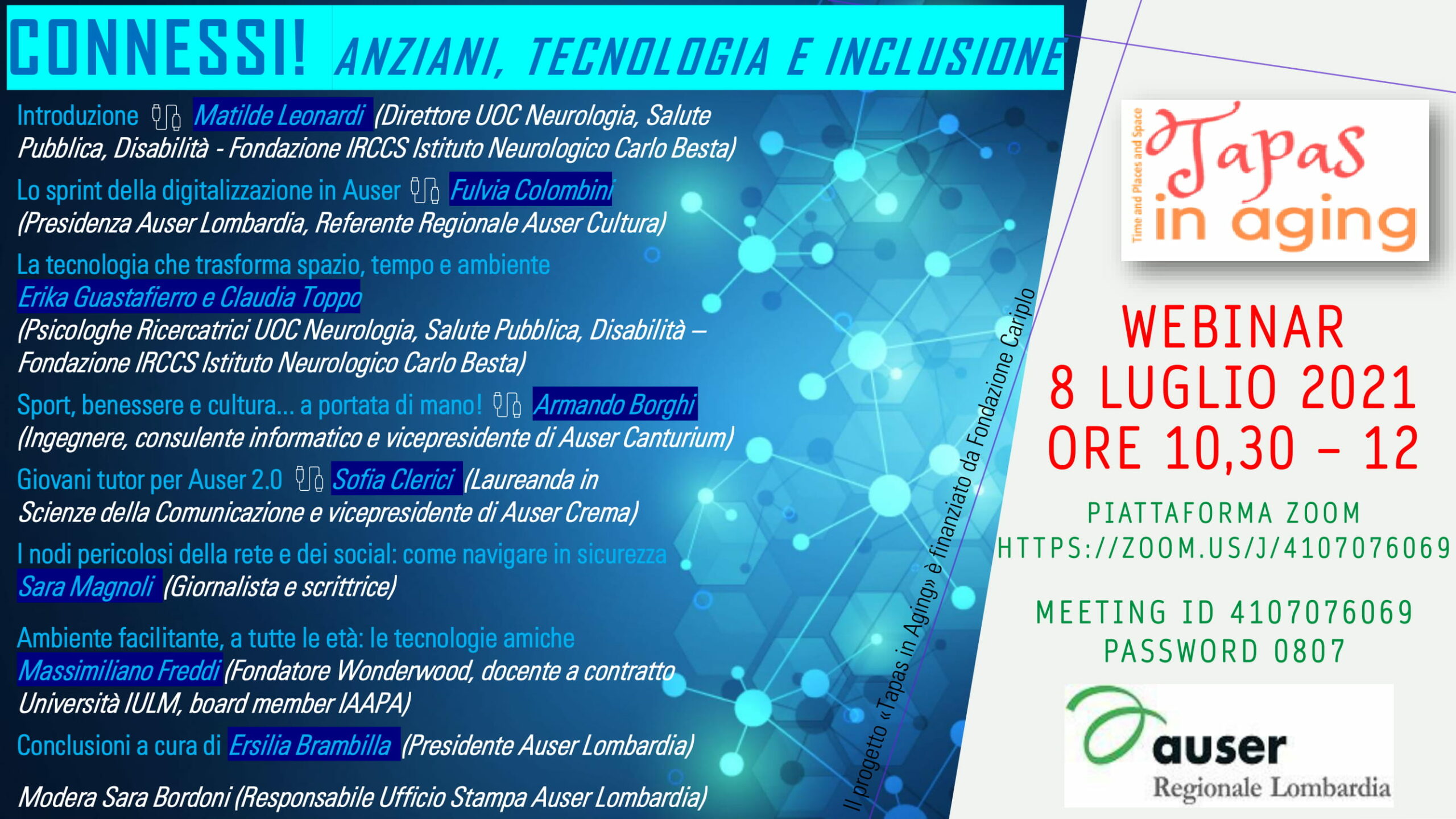 Auser Lombardia promuove il webinar “Connessi! Anziani, tecnologia e inclusione” per il prossimo 8 luglio. L’incontro vuole approfondire le opportunità legate all’utilizzo delle nuove tecnologie per sostenere l’invecchiamento attivo.