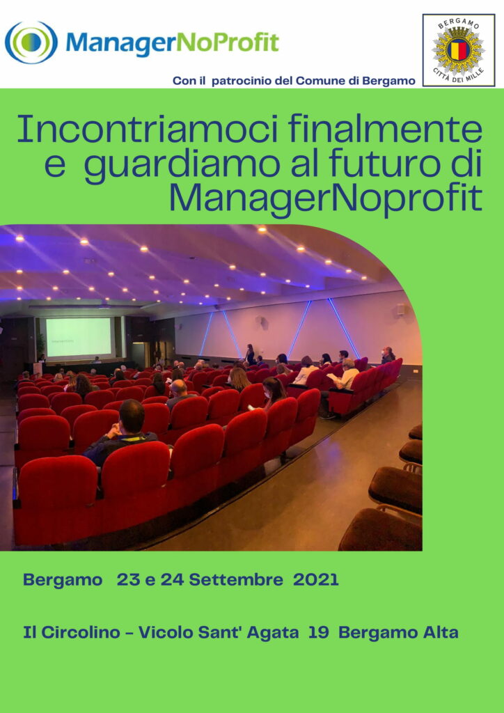 L’associazione ManagerNoProfit organizza per il 23 e il 24 settembre il suo convegno annuale che si terrà a Bergamo, presso Il Circolino, Vicolo Sant’ Agata 19. L’incontro vuole fare il punto su quelle che sono le prospettive future del lavoro di cura e, più in generale, del Terzo Settore a seguito della pandemia.