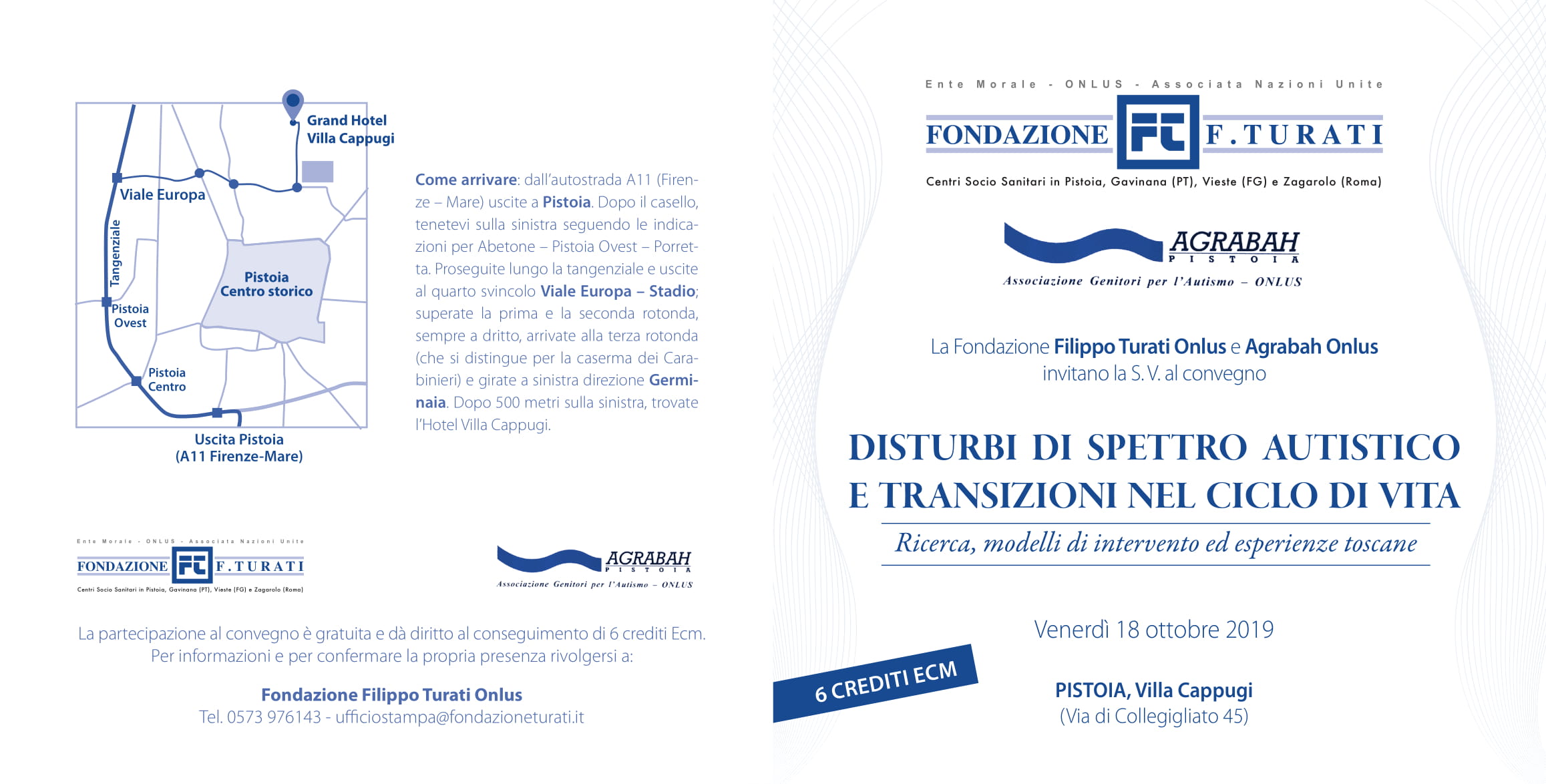 Vi segnaliamo il convegno, promosso dalla Fondazione Filippo Turati Onlus, "Disturbi di spettro autistico e transizioni nel ciclo di vita. Ricerca, modelli di intervento ed esperienze toscane", che si terrà a Pistoia, presso Villa Cappugi, il prossimo 18 ottobre.