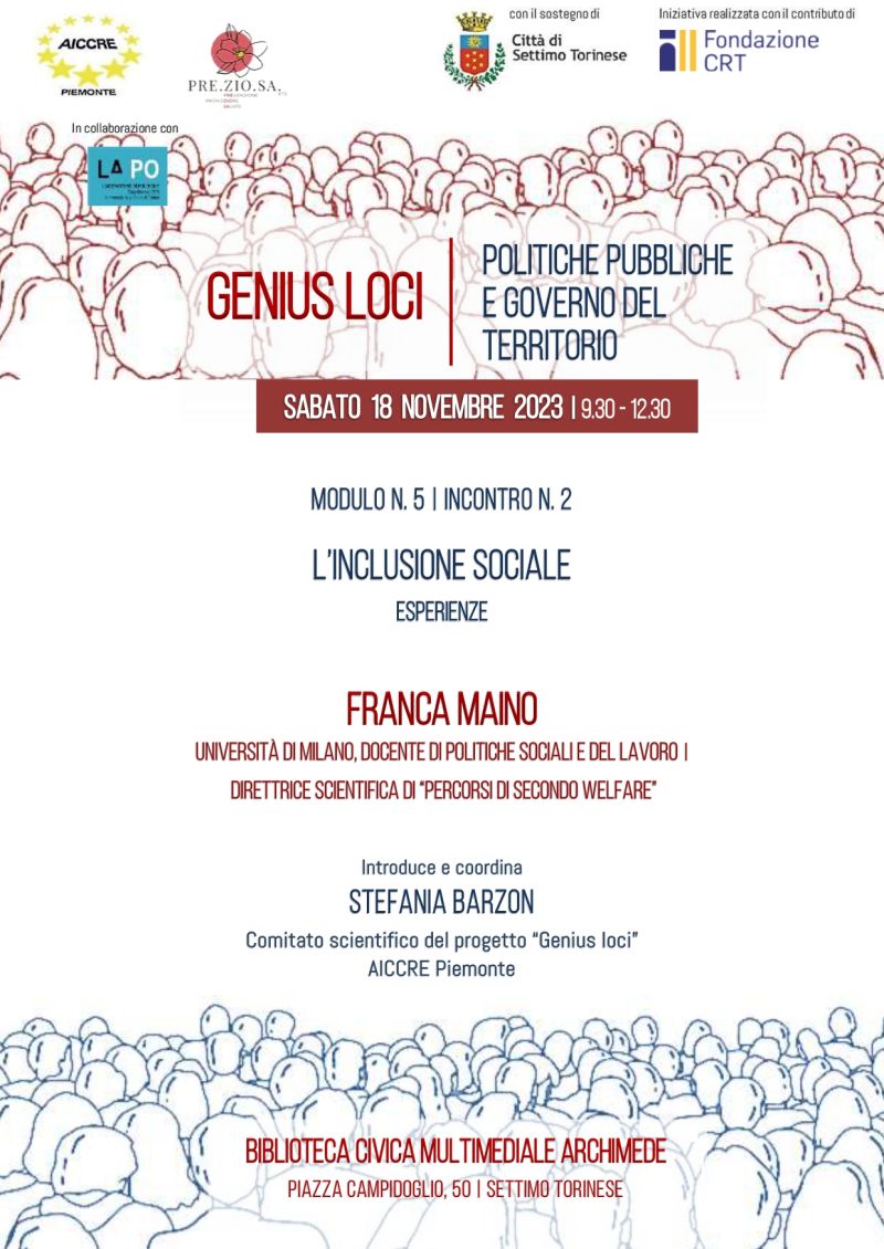 Franca Maino, docente di Politiche sociali e del Lavoro presso l’Università degli Studi di Milano e Direttrice scientifica del nostro Laboratorio, parlerà di esperienze di inclusione sociale.