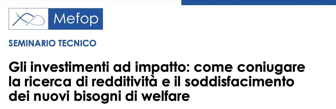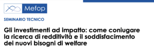 Questi argomenti verranno approfonditi ed esplorati durante il seminario “Gli investimenti ad impatto: come coniugare redditività e nuovi bisogni di welfare” curato e promosso da Mefop. L’evento è gratuito e si terrà in presenza a Roma il 5 ottobre 2022, dalle 10.00 alle 13.30, presso la Sala Trilussa di Cassa Geometri.