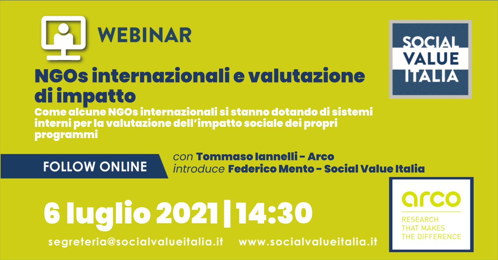Social Value Italia, in collaborazione con ARCO (Action Research for CO-development) organizza il webinar "NGOs internazionali e valutazione di impatto. Come alcune NGOs internazionali si stanno dotando di sistemi interni per la valutazione dell’impatto sociale dei propri programmi". Il webinar è fissato per martedì 6 luglio, dalle ore 14.30.