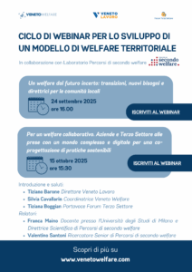 Il welfare territoriale non è solo una questione di servizi, ma di relazioni, fiducia e capacità di lavorare insieme. Nel secondo incontro del ciclo di webinar promosso da Veneto Lavoro e Veneto Welfare, in collaborazione con il Laboratorio Percorsi di secondo welfare, scopriremo come aziende e Terzo Settore possano collaborare per costruire pratiche sostenibili in risposta alle sfide di un mondo sempre più complesso e digitale.