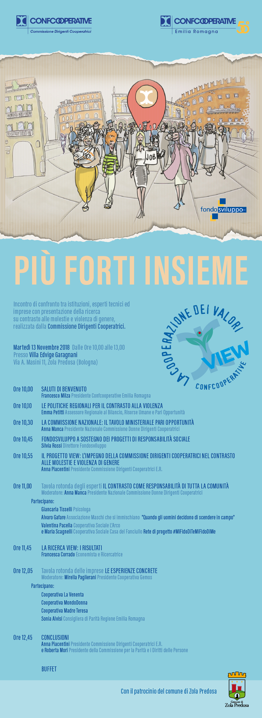 Quale ruolo può assumere la cooperazione nelle politiche di contrasto e prevenzione alla violenza sulle donne all’interno dei luoghi di lavoro? E quali situazioni si riscontrano nelle cooperative della nostra regione? Partendo da queste domande, la Commissione Dirigenti Cooperatrici di Confcooperative Emilia Romagna ha promosso la ricerca "VIEW. Violenza, Impresa e Welfare. Il ruolo della cooperazione per l’uguaglianza di genere e l’empowerment femminile", curata dall’economista Francesca Corrado e realizzata con il contributo di Fondosviluppo/Confcooperative. Si tratta di un lavoro avviato più di un anno fa e finalizzato a mappare le situazioni di contrasto e prevenzione alla violenza sulle donne all’interno delle imprese cooperative, per capire quali buone pratiche portare avanti e dove aprire nuovi spazi di intervento.