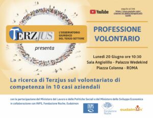 Lunedì 20 giugno a Roma, presso la Sala Angiolillo di Palazzo Wedekind, si svolgerà l’incontro “Professione volontario. La ricerca di Terzjus sul volontariato di competenza in 10 casi aziendali”.