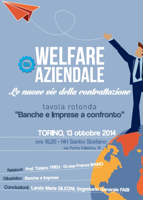 Lunedì 13 ottobre, ore 10.30, presso – NH Santo Stefano – Torino, FABI organizza la tavola rotonda “Banche e imprese a confronto”, nell’ambito del convegno “WELFARE AZIENDALE: nuove vie della contrattazione”, con l’obiettivo di stimolare un dibattitto tra i partecipanti sulle nuove vie di contrattazione e produttività da destinare al welfare aziendale.