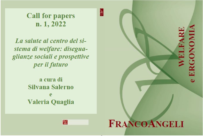 Vi segnaliamo la call for paper promossa dalla rivista scientifica “Welfare e ergonomia” (FrancoAngeli) dedicata al tema “La salute al centro del sistema di welfare: diseguaglianze sociali e prospettive per il futuro“.
