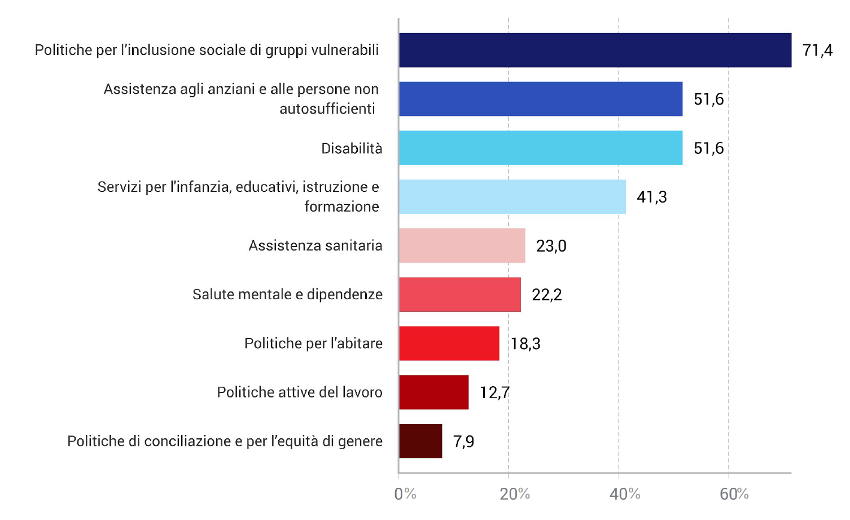 Un ulteriore limite che si riscontra nell’offerta di servizi di welfare da parte delle organizzazioni dell’economia sociale nel settore è costituito dalla circostanza che il ruolo dell’economia sociale goda di particolare riconoscimento nell’ambito dei servizi alla persona – inclusione sociale, disabilità, non autosufficienza, educazione – mentre risulta meno visibile in ambiti altrettanto strategici come sanità, conciliazione, abitare e lavoro. Questo suggerisce una settorializzazione che potrebbe risultare limitante sia per la capacità di dare risposta a rischi e bisogni sociali emergenti, sia rispetto all’ampiezza e lungimiranza degli obiettivi europei iniziali di allargamento dell’economia sociale a nuovi settori, quali ambiente e digitale.
